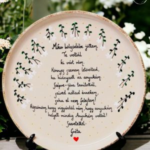 A termékekhez kérhetsz extrákat, mint díszcsomagolást, a tányérokhoz fali akasztót vagy állványt (Bögrék esetében, ha az állvány opciót bejelölöd, akkor egy fém akasztó kampót teszünk a csomagba.), üdvözlő kártyát, ami egy egyedileg szövegezhető, tartós alumínium kártya (nem papír).