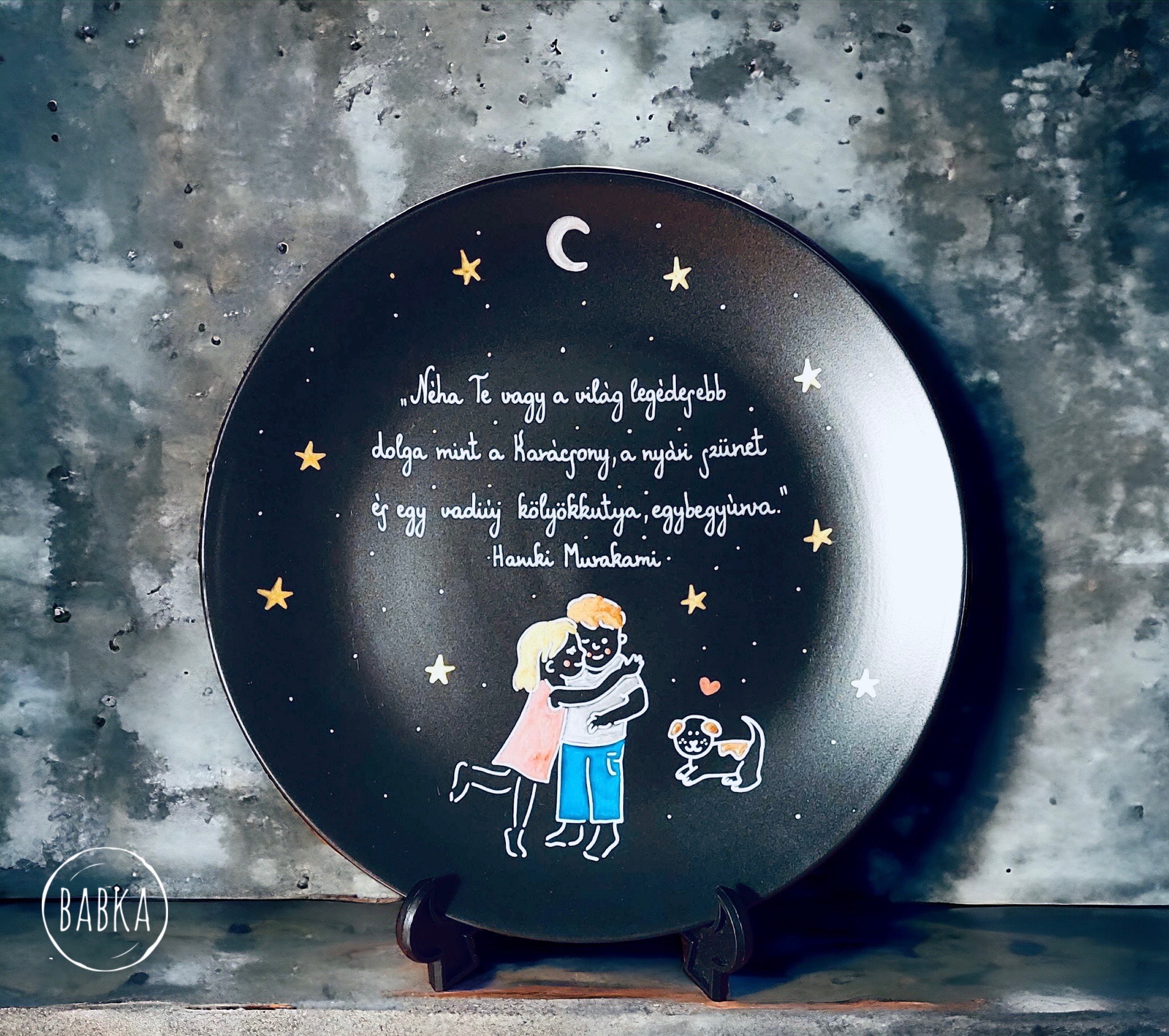 A termékekhez kérhetsz extrákait, mint díszcsomagolást, a tányérokhoz fali akasztót vagy állványt (Bögrék esetében, ha az állvány opciót bejelölöd, akkor egy fém akasztó kampót teszünk a csomagba.), üdvözlő kártyát, ami egy egyedileg szövegezhető, tartós alumínium kártya (nem papír).