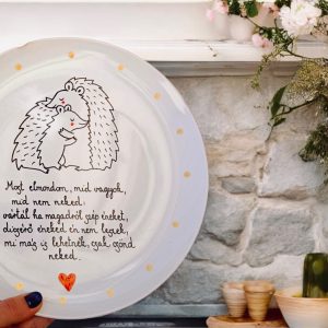 A termékekhez kérhetsz extrákat, mint díszcsomagolást, a tányérokhoz fali akasztót vagy állványt (Bögrék esetében, ha az állvány opciót bejelölöd, akkor egy fém akasztó kampót teszünk a csomagba.), üdvözlő kártyát, ami egy egyedileg szövegezhető, tartós alumínium kártya (nem papír).