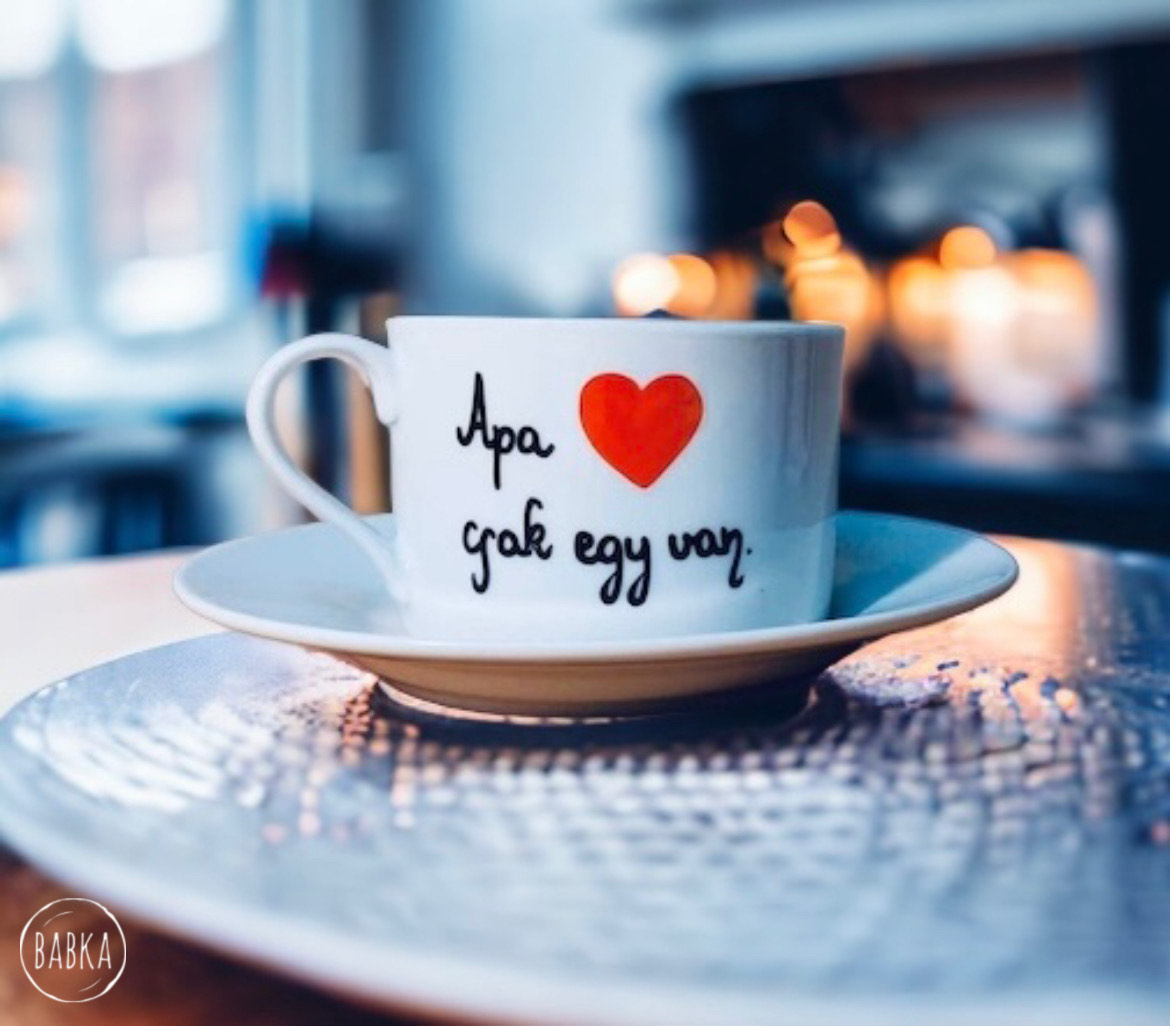 Kézzel festett, egyedi termék. Néhány megjelölt termék kivételével soha nem használunk sablonokat, minden szabad kézzel zajlik. Kérheted különböző variációkban is, egyedi névre szóló feliratokkal, vagy a minta megváltoztatásával is, de tekinthetsz a termékre inspirációként, és megálmodhatsz egy teljesen rád szabott koncepciót. Több mint 800 saját termékünk van, tehát biztosan tudunk majd segíteni. :) Összeállíthatsz saját szetteket is természetesen. Ha nehezen igazodsz el a rengeteg kerámia és porcelán között, akkor ne érezd magad kellemetlenül, ha írsz nekünk! 😊 Mi is elveszünk néha sok mintában, természetes dolog, ha kérdezni szeretnél. A termékeket kézzel festjük, szárítjuk, hőkezeljük, ami időigényes folyamat, de ennek ellenére a 24 órás expressz kiszállításnak hála a legtöbb esetben 3-4 nap alatt meg is kapod a kiválasztott darabokat. A maximum kiszállítási időnk 10 munkanap, de ez ritkán fordul elő, és általában akkor, ha sok darabból álló teljesen egyedi kivitelezést kérsz. Ha nagyon sietned kell, akkor válaszd az SOS kiszállítást, mint feláras szolgáltatást. Ha SOS kiszállítást kérsz, akkor minden más munkát félreteszünk, és azonnal nekilátunk a tiédnek, hogy 1-3 nap alatt megkapd. Tipp: Ha nagyon sürgős, akkor írj nekünk messengeren, ahol gyorsan egyeztethetjük a részleteket, és igyekszünk segíteni, hogy az ajándékozás jól sikerüljön. A termékekhez kérhetsz extrákat, mint díszcsomagolást, a tányérokhoz fali akasztót vagy állványt (Bögrék esetében, ha az állvány opciót bejelölöd, akkor egy fém akasztó kampót teszünk a csomagba.), üdvözlő kártyát, ami egy egyedileg szövegezhető, tartós alumínium kártya (nem papír). Ha bármilyen probléma lenne a rendeléseddel, akkor írj nekünk mielőbb. Fontos tudnod, hogy soha és semmilyen esetben nem érhet kár nálunk! Írj nekünk emailt a hello@babkamanufaktura.hu email címre, és maximum néhány nap alatt releváns választ adunk. Ha sürgős, akkor pedig válaszd a messengert! Ha nagyobb mennyiséget rendelnél viszonteladásra, rendezvényre, tudunk adni egyedi árajánlatot (min. 20 darab tétel előre kifizetett megrendelésétől). Számos kávézó, cukrászda, esküvő, céges buli lett egy kicsit emelkedettebb a Babka termékeitől. Bár kézenfekvő lenne, hogy emailben jelzed az igényt, mégis válaszd inkább ez esetben is a messengert, mert sokkal dinamikusabban tudunk ott egyeztetni. Figyelj, hogy jelentkezz be az üzenet küldésénél, és ne vendégként írj, mert az elveszhet. Nézz körül az oldalon! Bármilyen kérdés, kérés esetén, írj Babkának az oldalon található messenger ikon segítségével, vagy a megadott egyéb csatornák egyikén. (Minden egyéb kérdés tekintetében megtalálod oldalunkon ÁSZF-ünket is.) Ne feledd! A Babkával átadott üzenetekre még évekig emlékezni fognak, és érezni fogják, hogy időt is, kreativitást is áldoztál rájuk. Nem csak letudtad a „feladatot” egy sablonos megoldással. Köszönjük, hogy itt vagy! Jó válogatást, tervezést kívánunk!