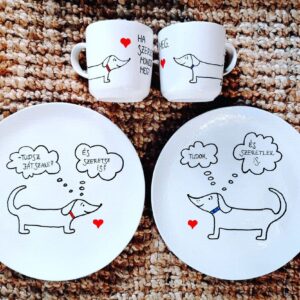 Kézzel festett, egyedi termék. Néhány megjelölt termék kivételével soha nem használunk sablonokat, minden szabad kézzel zajlik. Kérheted különböző variációkban is, egyedi névre szóló feliratokkal, vagy a minta megváltoztatásával is, de tekinthetsz a termékre inspirációként, és megálmodhatsz egy teljesen rád szabott koncepciót. Több mint 800 saját termékünk van, tehát biztosan tudunk majd segíteni. :) Összeállíthatsz saját szetteket is természetesen. Ha nehezen igazodsz el a rengeteg kerámia és porcelán között, akkor ne érezd magad kellemetlenül, ha írsz nekünk! 😊 Mi is elveszünk néha sok mintában, természetes dolog, ha kérdezni szeretnél. A termékeket kézzel festjük, szárítjuk, hőkezeljük, ami időigényes folyamat, de ennek ellenére a 24 órás expressz kiszállításnak hála a legtöbb esetben 3-4 nap alatt meg is kapod a kiválasztott darabokat. A maximum kiszállítási időnk 10 munkanap, de ez ritkán fordul elő, és általában akkor, ha sok darabból álló teljesen egyedi kivitelezést kérsz. Ha nagyon sietned kell, akkor válaszd az SOS kiszállítást, mint feláras szolgáltatást. Ha SOS kiszállítást kérsz, akkor minden más munkát félreteszünk, és azonnal nekilátunk a tiédnek, hogy 1-3 nap alatt megkapd. Tipp: Ha nagyon sürgős, akkor írj nekünk messengeren, ahol gyorsan egyeztethetjük a részleteket, és igyekszünk segíteni, hogy az ajándékozás jól sikerüljön. A termékekhez kérhetsz extrákat, mint díszcsomagolást, a tányérokhoz fali akasztót vagy állványt (Bögrék esetében, ha az állvány opciót bejelölöd, akkor egy fém akasztó kampót teszünk a csomagba.), üdvözlő kártyát, ami egy egyedileg szövegezhető, tartós alumínium kártya (nem papír). Ha bármilyen probléma lenne a rendeléseddel, akkor írj nekünk mielőbb. Fontos tudnod, hogy soha és semmilyen esetben nem érhet kár nálunk! Írj nekünk emailt a hello@babkamanufaktura.hu email címre, és maximum néhány nap alatt releváns választ adunk. Ha sürgős, akkor pedig válaszd a messengert! Ha nagyobb mennyiséget rendelnél viszonteladásra, rendezvényre, tudunk adni egyedi árajánlatot (min. 20 darab tétel előre kifizetett megrendelésétől). Számos kávézó, cukrászda, esküvő, céges buli lett egy kicsit emelkedettebb a Babka termékeitől. Bár kézenfekvő lenne, hogy emailben jelzed az igényt, mégis válaszd inkább ez esetben is a messengert, mert sokkal dinamikusabban tudunk ott egyeztetni. Figyelj, hogy jelentkezz be az üzenet küldésénél, és ne vendégként írj, mert az elveszhet. Nézz körül az oldalon! Bármilyen kérdés, kérés esetén, írj Babkának az oldalon található messenger ikon segítségével, vagy a megadott egyéb csatornák egyikén. (Minden egyéb kérdés tekintetében megtalálod oldalunkon ÁSZF-ünket is.) Ne feledd! A Babkával átadott üzenetekre még évekig emlékezni fognak, és érezni fogják, hogy időt is, kreativitást is áldoztál rájuk. Nem csak letudtad a „feladatot” egy sablonos megoldással. Köszönjük, hogy itt vagy! Jó válogatást, tervezést kívánunk!