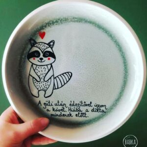 Kézzel festett termék. Egyedi, soha nem készül kettő pontosan egyforma. Néhány megjelölt termék kivételével soha nem használunk sablonokat, minden szabad kézzel zajlik. Kérheted különböző variációkban is, egyedi névre szóló feliratokkal, vagy a minta megváltoztatásával is, de tekinthetsz a termékre inspirációként, és megálmodhatsz egy teljesen rád szabott koncepciót. Több mint 800 saját termékünk van, tehát biztosan tudunk majd segíteni. :) Összeállíthatsz saját szetteket is természetesen. Ha nehezen igazodsz el a rengeteg kerámia és porcelán között, akkor ne érezd magad kellemetlenül, ha írsz nekünk! 😊 Mi is elveszünk néha sok mintában, természetes dolog, ha kérdezni szeretnél. A termékeket kézzel festjük, szárítjuk, hőkezeljük, ami időigényes folyamat, de ennek ellenére a 24 órás expressz kiszállításnak hála a legtöbb esetben 3-4 nap alatt meg is kapod a kiválasztott darabokat. A maximum kiszállítási időnk 10 munkanap, de ez ritkán fordul elő, és általában akkor, ha sok darabból álló teljesen egyedi kivitelezést kérsz. Ha nagyon sietned kell, akkor válaszd az SOS kiszállítást, mint feláras szolgáltatást. Ha SOS kiszállítást kérsz, akkor minden más munkát félreteszünk, és azonnal nekilátunk a tiédnek, hogy 1-3 nap alatt megkapd. Tipp: Ha nagyon sürgős, akkor írj nekünk messengeren, ahol gyorsan egyeztethetjük a részleteket, és igyekszünk segíteni, hogy az ajándékozás jól sikerüljön. A termékekhez kérhetsz extrákat, mint díszcsomagolást, a tányérokhoz fali akasztót vagy állványt (Bögrék esetében, ha az állvány opciót bejelölöd, akkor egy fém akasztó kampót teszünk a csomagba.), üdvözlő kártyát, ami egy egyedileg szövegezhető, tartós alumínium kártya (nem papír). Ha bármilyen probléma lenne a rendeléseddel, akkor írj nekünk mielőbb. Fontos tudnod, hogy soha és semmilyen esetben nem érhet kár nálunk! Írj nekünk emailt a hello@babkamanufaktura.hu email címre, és maximum néhány nap alatt releváns választ adunk. Ha sürgős, akkor pedig válaszd a messengert! Ha nagyobb mennyiséget rendelnél viszonteladásra, rendezvényre, tudunk adni egyedi árajánlatot (min. 20 darab tétel előre kifizetett megrendelésétől). Számos kávézó, cukrászda, esküvő, céges buli lett egy kicsit emelkedettebb a Babka termékeitől. Bár kézenfekvő lenne, hogy emailben jelzed az igényt, mégis válaszd inkább ez esetben is a messengert, mert sokkal dinamikusabban tudunk ott egyeztetni. Figyelj, hogy jelentkezz be az üzenet küldésénél, és ne vendégként írj, mert az elveszhet. Nézz körül az oldalon! Bármilyen kérdés, kérés esetén, írj Babkának az oldalon található messenger ikon segítségével, vagy a megadott egyéb csatornák egyikén. Ne feledd! A Babkával átadott üzenetekre még évekig emlékezni fognak, és érezni fogják, hogy időt is, kreativitást is áldoztál rájuk. Nem csak letudtad a „feladatot” egy sablonos megoldással. Köszönjük, hogy itt vagy! Jó válogatást, tervezést kívánunk!