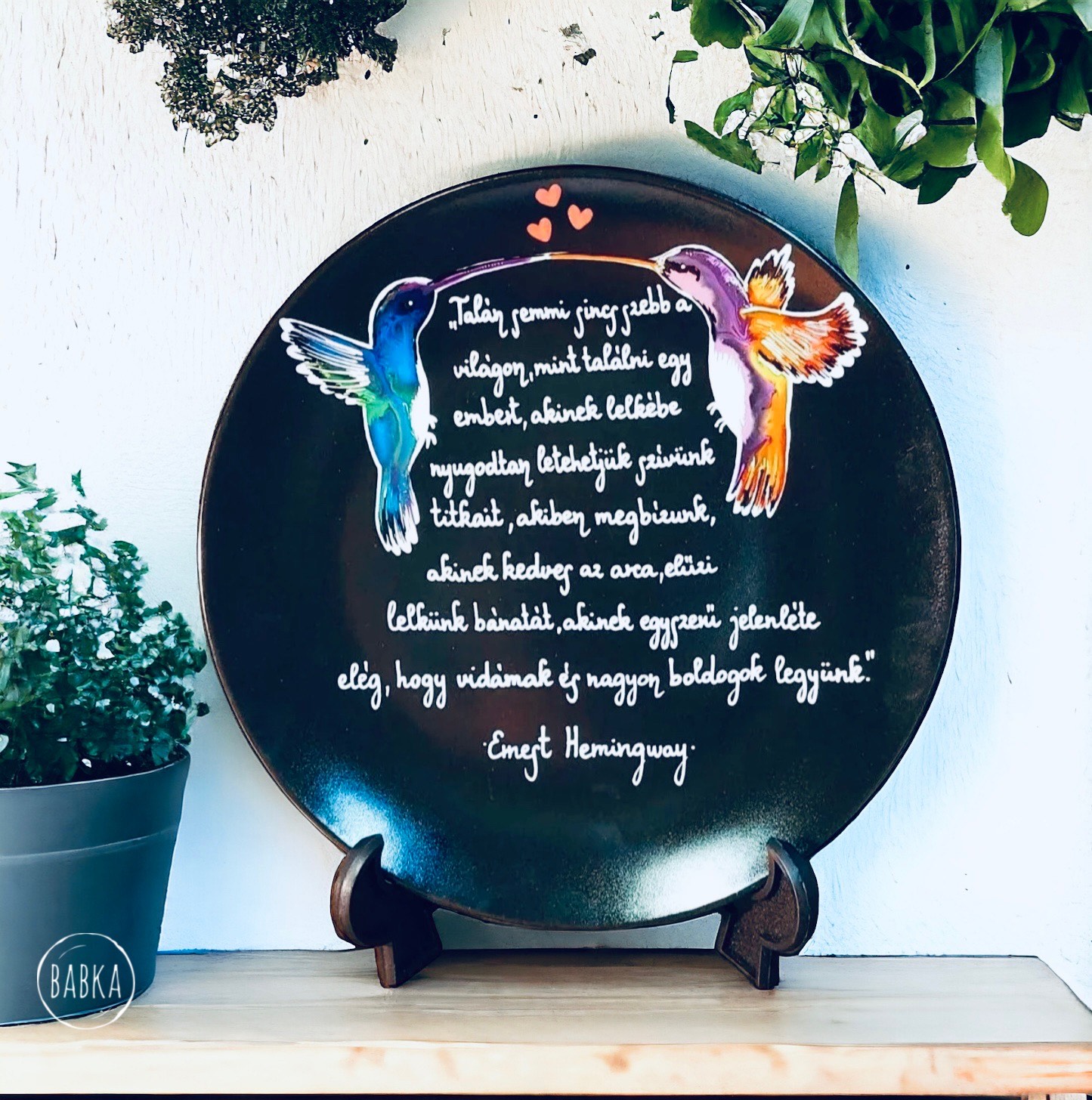 A termékekhez kérhetsz extrákait, mint díszcsomagolást, a tányérokhoz fali akasztót vagy állványt (Bögrék esetében, ha az állvány opciót bejelölöd, akkor egy fém akasztó kampót teszünk a csomagba.), üdvözlő kártyát, ami egy egyedileg szövegezhető, tartós alumínium kártya (nem papír).