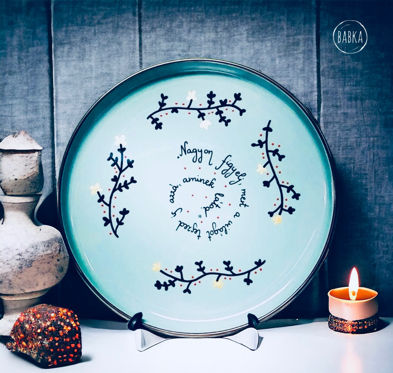 Kézzel festett termék. Egyedi, soha nem készül kettő pontosan egyforma. Néhány megjelölt termék kivételével soha nem használunk sablonokat, minden szabad kézzel zajlik. Kérheted különböző variációkban is, egyedi névre szóló feliratokkal, vagy a minta megváltoztatásával is, de tekinthetsz a termékre inspirációként, és megálmodhatsz egy teljesen rád szabott koncepciót. Több mint 800 saját termékünk van, tehát biztosan tudunk majd segíteni. :) Összeállíthatsz saját szetteket is természetesen. Ha nehezen igazodsz el a rengeteg kerámia és porcelán között, akkor ne érezd magad kellemetlenül, ha írsz nekünk! 😊 Mi is elveszünk néha sok mintában, természetes dolog, ha kérdezni szeretnél. A termékeket kézzel festjük, szárítjuk, hőkezeljük, ami időigényes folyamat, de ennek ellenére a 24 órás expressz kiszállításnak hála a legtöbb esetben 3-4 nap alatt meg is kapod a kiválasztott darabokat. A maximum kiszállítási időnk 10 munkanap, de ez ritkán fordul elő, és általában akkor, ha sok darabból álló teljesen egyedi kivitelezést kérsz. Ha nagyon sietned kell, akkor válaszd az SOS kiszállítást, mint feláras szolgáltatást. Ha SOS kiszállítást kérsz, akkor minden más munkát félreteszünk, és azonnal nekilátunk a tiédnek, hogy 1-3 nap alatt megkapd. Tipp: Ha nagyon sürgős, akkor írj nekünk messengeren, ahol gyorsan egyeztethetjük a részleteket, és igyekszünk segíteni, hogy az ajándékozás jól sikerüljön. A termékekhez kérhetsz extrákat, mint díszcsomagolást, a tányérokhoz fali akasztót vagy állványt (Bögrék esetében, ha az állvány opciót bejelölöd, akkor egy fém akasztó kampót teszünk a csomagba.), üdvözlő kártyát, ami egy egyedileg szövegezhető, tartós alumínium kártya (nem papír). Ha bármilyen probléma lenne a rendeléseddel, akkor írj nekünk mielőbb. Fontos tudnod, hogy soha és semmilyen esetben nem érhet kár nálunk! Írj nekünk emailt a hello@babkamanufaktura.hu email címre, és maximum néhány nap alatt releváns választ adunk. Ha sürgős, akkor pedig válaszd a messengert! Ha nagyobb mennyiséget rendelnél viszonteladásra, rendezvényre, tudunk adni egyedi árajánlatot (min. 20 darab tétel előre kifizetett megrendelésétől). Számos kávézó, cukrászda, esküvő, céges buli lett egy kicsit emelkedettebb a Babka termékeitől. Bár kézenfekvő lenne, hogy emailben jelzed az igényt, mégis válaszd inkább ez esetben is a messengert, mert sokkal dinamikusabban tudunk ott egyeztetni. Figyelj, hogy jelentkezz be az üzenet küldésénél, és ne vendégként írj, mert az elveszhet. Nézz körül az oldalon! Bármilyen kérdés, kérés esetén, írj Babkának az oldalon található messenger ikon segítségével, vagy a megadott egyéb csatornák egyikén. Ne feledd! A Babkával átadott üzenetekre még évekig emlékezni fognak, és érezni fogják, hogy időt is, kreativitást is áldoztál rájuk. Nem csak letudtad a „feladatot” egy sablonos megoldással. Köszönjük, hogy itt vagy! Jó válogatást, tervezést kívánunk!