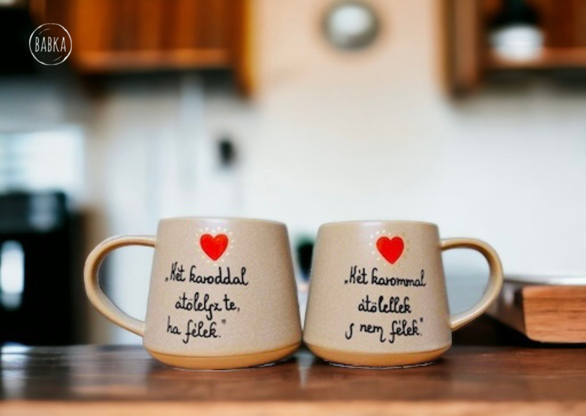 Kézzel festett termék. Egyedi, soha nem készül kettő pontosan egyforma. Néhány megjelölt termék kivételével soha nem használunk sablonokat, minden szabad kézzel zajlik. Kérheted különböző variációkban is, egyedi névre szóló feliratokkal, vagy a minta megváltoztatásával is, de tekinthetsz a termékre inspirációként, és megálmodhatsz egy teljesen rád szabott koncepciót. Több mint 800 saját termékünk van, tehát biztosan tudunk majd segíteni. :) Összeállíthatsz saját szetteket is természetesen. Ha nehezen igazodsz el a rengeteg kerámia és porcelán között, akkor ne érezd magad kellemetlenül, ha írsz nekünk! 😊 Mi is elveszünk néha sok mintában, természetes dolog, ha kérdezni szeretnél. A termékeket kézzel festjük, szárítjuk, hőkezeljük, ami időigényes folyamat, de ennek ellenére a 24 órás expressz kiszállításnak hála a legtöbb esetben 3-4 nap alatt meg is kapod a kiválasztott darabokat. A maximum kiszállítási időnk 10 munkanap, de ez ritkán fordul elő, és általában akkor, ha sok darabból álló teljesen egyedi kivitelezést kérsz. Ha nagyon sietned kell, akkor válaszd az SOS kiszállítást, mint feláras szolgáltatást. Ha SOS kiszállítást kérsz, akkor minden más munkát félreteszünk, és azonnal nekilátunk a tiédnek, hogy 1-3 nap alatt megkapd. Tipp: Ha nagyon sürgős, akkor írj nekünk messengeren, ahol gyorsan egyeztethetjük a részleteket, és igyekszünk segíteni, hogy az ajándékozás jól sikerüljön. A termékekhez kérhetsz extrákat, mint díszcsomagolást, a tányérokhoz fali akasztót vagy állványt (Bögrék esetében, ha az állvány opciót bejelölöd, akkor egy fém akasztó kampót teszünk a csomagba.), üdvözlő kártyát, ami egy egyedileg szövegezhető, tartós alumínium kártya (nem papír). Ha bármilyen probléma lenne a rendeléseddel, akkor írj nekünk mielőbb. Fontos tudnod, hogy soha és semmilyen esetben nem érhet kár nálunk! Írj nekünk emailt a hello@babkamanufaktura.hu email címre, és maximum néhány nap alatt releváns választ adunk. Ha sürgős, akkor pedig válaszd a messengert! Ha nagyobb mennyiséget rendelnél viszonteladásra, rendezvényre, tudunk adni egyedi árajánlatot (min. 20 darab tétel előre kifizetett megrendelésétől). Számos kávézó, cukrászda, esküvő, céges buli lett egy kicsit emelkedettebb a Babka termékeitől. Bár kézenfekvő lenne, hogy emailben jelzed az igényt, mégis válaszd inkább ez esetben is a messengert, mert sokkal dinamikusabban tudunk ott egyeztetni. Figyelj, hogy jelentkezz be az üzenet küldésénél, és ne vendégként írj, mert az elveszhet. Nézz körül az oldalon! Bármilyen kérdés, kérés esetén, írj Babkának az oldalon található messenger ikon segítségével, vagy a megadott egyéb csatornák egyikén. Ne feledd! A Babkával átadott üzenetekre még évekig emlékezni fognak, és érezni fogják, hogy időt is, kreativitást is áldoztál rájuk. Nem csak letudtad a „feladatot” egy sablonos megoldással. Köszönjük, hogy itt vagy! Jó válogatást, tervezést kívánunk!