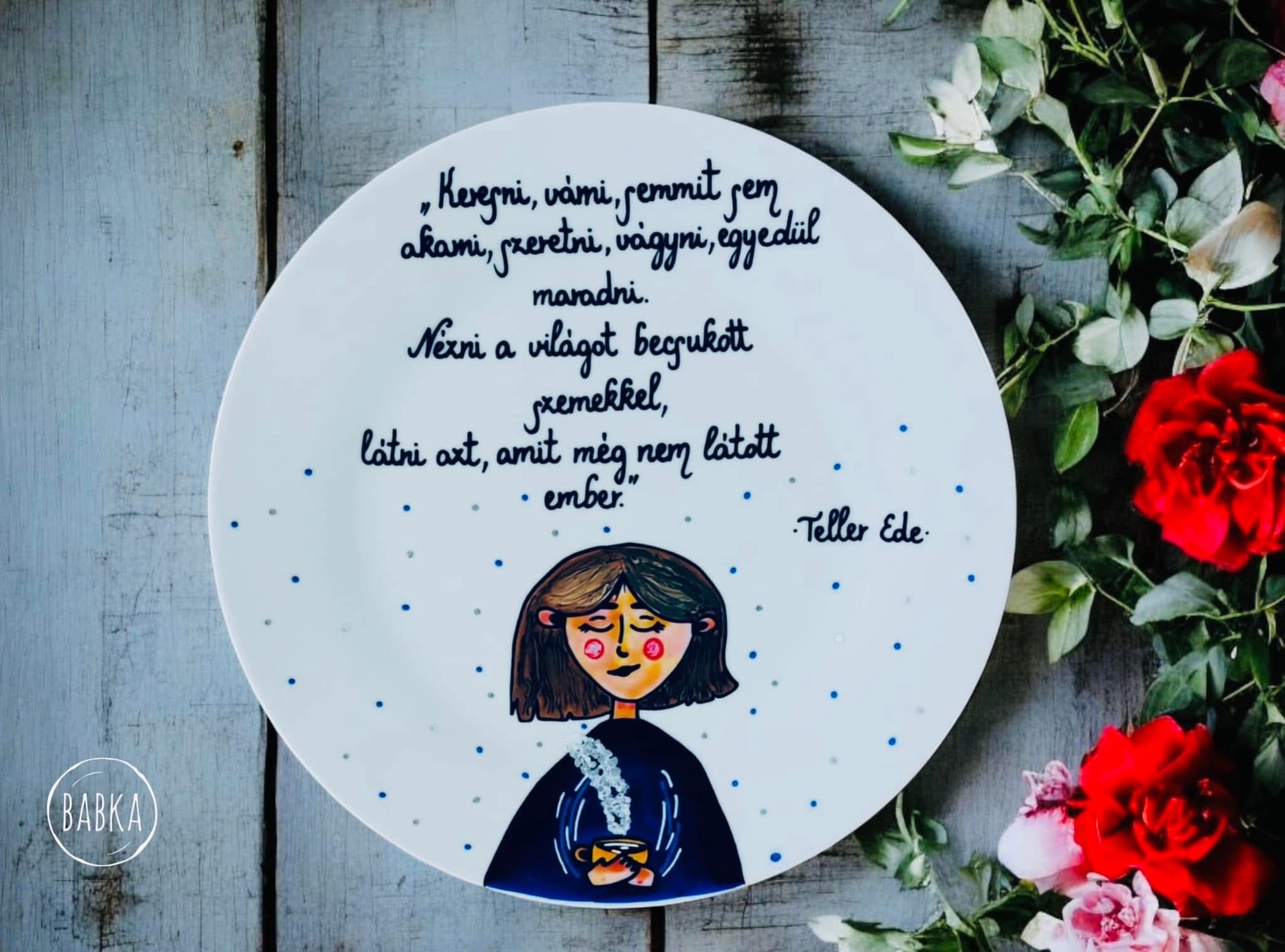 Kézzel festett egyedi termék. Néhány megjelölt termék kivételével soha nem használunk sablonokat, minden szabad kézzel zajlik. Kérheted különböző variációkban is, egyedi névre szóló feliratokkal, vagy a minta megváltoztatásával is, de tekinthetsz a termékre inspirációként, és megálmodhatsz egy teljesen rád szabott koncepciót. Több mint 800 saját termékünk van, tehát biztosan tudunk majd segíteni. 🙂 Összeállíthatsz saját szetteket is természetesen. Ha nehezen igazodsz el a rengeteg kerámia és porcelán között, akkor ne érezd magad kellemetlenül, ha írsz nekünk! 😊 Mi is elveszünk néha sok mintában, természetes dolog, ha kérdezni szeretnél. A termékeket kézzel festjük, szárítjuk, hőkezeljük, ami időigényes folyamat, de ennek ellenére a 24 órás express kiszállításnak hála a legtöbb esetben 3-4 nap alatt meg is kapod a kiválasztott darabokat. A maximum kiszállítási időnk 10 munkanap, de ez ritkán fordul elő, és általában akkor, ha sok darabból álló teljesen egyedi kivitelezést kérsz. Ha nagyon sietned kell, akkor válaszd az SOS kiszállítást, mint feláras szolgáltatást. Ha SOS kiszállítást kérsz, akkor minden más munkát félreteszünk, és azonnal nekilátunk a tiédnek, hogy 1-3 nap alatt megkapd. Tipp: Ha nagyon sürgős, akkor írj nekünk messengeren, ahol gyorsan egyeztethetjüka részleteket, és igyekszünk segíteni, hogy az ajándékozás jól sikerüljön. A termékekhez kérhetsz extrákait, mint díszcsomagolást, a tányérokhoz fali akasztót vagy állványt (Bögrék esetében, ha az állvány opciót bejelölöd, akkor egy fém akasztó kampót teszünk a csomagba.), üdvözlő kártyát, ami egy egyedileg szövegezhető, tartós alumínium kártya (nem papír). Ha bármilyen probléma lenne a rendeléseddel, akkor írj nekünk mielőbb. Fontos tudnod, hogy soha és semmilyen esetben nem érhet kár nálunk! Írj nekünk emailt a hello@babkamanufaktura.hu email címre, és maximum néhány nap alatt releváns választ adunk. Ha sürgős, akkor pedig válaszd a messengert! Ha nagyobb mennyiséget rendelnél viszonteladásra, rendezvényre, tudunk adni egyedi árajánlatot (min. 20 darab tétel előre kifizetett megrendelésétől). Számos kávézó, cukrászda, esküvő, céges buli lett egy kicsit emelkedettebb a Babka termékeitől. Bár kézenfekvő lenne, hogy emailben jelzed az igényt, mégis válaszd inkább ez esetben is a messengert, mert sokkal dinamikusabban tudunk ott egyeztetni. Figyelj, hogy jelentkezz be az üzenet küldésénél, és ne vendégként írj, mert az elveszhet. Nézz körül az oldalon! Bármilyen kérdés, kérés esetén, írj Babkának az oldalon található messenger ikon segítségével, vagy a megadott egyéb csatornák egyikén. Ne feledd! A Babkával átadott üzenetekre még évekig emlékezni fognak, és érezni fogják, hogy időt is, kreativitást is áldoztál rájuk. Nem csak letudtad a „feladatot” egy sablonos megoldással. Köszönjük, hogy itt vagy! Jó válogatást, tervezést kívánunk!