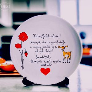 A termékekhez kérhetsz extrákait, mint díszcsomagolást, a tányérokhoz fali akasztót vagy állványt (Bögrék esetében, ha az állvány opciót bejelölöd, akkor egy fém akasztó kampót teszünk a csomagba.), üdvözlő kártyát, ami egy egyedileg szövegezhető, tartós alumínium kártya (nem papír).