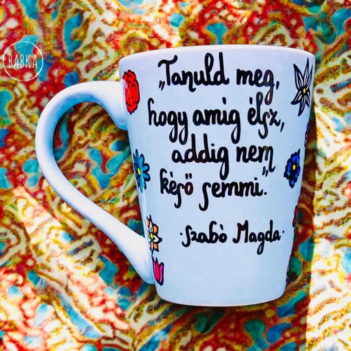 Kézzel festett termék. Egyedi, soha nem készül kettő pontosan egyforma. Néhány megjelölt termék kivételével soha nem használunk sablonokat, minden szabad kézzel zajlik. Kérheted különböző variációkban is, egyedi névre szóló feliratokkal, vagy a minta megváltoztatásával is, de tekinthetsz a termékre inspirációként, és megálmodhatsz egy teljesen rád szabott koncepciót. Több mint 800 saját termékünk van, tehát biztosan tudunk majd segíteni. :) Összeállíthatsz saját szetteket is természetesen. Ha nehezen igazodsz el a rengeteg kerámia és porcelán között, akkor ne érezd magad kellemetlenül, ha írsz nekünk! 😊 Mi is elveszünk néha sok mintában, természetes dolog, ha kérdezni szeretnél. A termékeket kézzel festjük, szárítjuk, hőkezeljük, ami időigényes folyamat, de ennek ellenére a 24 órás expressz kiszállításnak hála a legtöbb esetben 3-4 nap alatt meg is kapod a kiválasztott darabokat. A maximum kiszállítási időnk 10 munkanap, de ez ritkán fordul elő, és általában akkor, ha sok darabból álló teljesen egyedi kivitelezést kérsz. Ha nagyon sietned kell, akkor válaszd az SOS kiszállítást, mint feláras szolgáltatást. Ha SOS kiszállítást kérsz, akkor minden más munkát félreteszünk, és azonnal nekilátunk a tiédnek, hogy 1-3 nap alatt megkapd. Tipp: Ha nagyon sürgős, akkor írj nekünk messengeren, ahol gyorsan egyeztethetjük a részleteket, és igyekszünk segíteni, hogy az ajándékozás jól sikerüljön. A termékekhez kérhetsz extrákat, mint díszcsomagolást, a tányérokhoz fali akasztót vagy állványt (Bögrék esetében, ha az állvány opciót bejelölöd, akkor egy fém akasztó kampót teszünk a csomagba.), üdvözlő kártyát, ami egy egyedileg szövegezhető, tartós alumínium kártya (nem papír). Ha bármilyen probléma lenne a rendeléseddel, akkor írj nekünk mielőbb. Fontos tudnod, hogy soha és semmilyen esetben nem érhet kár nálunk! Írj nekünk emailt a hello@babkamanufaktura.hu email címre, és maximum néhány nap alatt releváns választ adunk. Ha sürgős, akkor pedig válaszd a messengert! Ha nagyobb mennyiséget rendelnél viszonteladásra, rendezvényre, tudunk adni egyedi árajánlatot (min. 20 darab tétel előre kifizetett megrendelésétől). Számos kávézó, cukrászda, esküvő, céges buli lett egy kicsit emelkedettebb a Babka termékeitől. Bár kézenfekvő lenne, hogy emailben jelzed az igényt, mégis válaszd inkább ez esetben is a messengert, mert sokkal dinamikusabban tudunk ott egyeztetni. Figyelj, hogy jelentkezz be az üzenet küldésénél, és ne vendégként írj, mert az elveszhet. Nézz körül az oldalon! Bármilyen kérdés, kérés esetén, írj Babkának az oldalon található messenger ikon segítségével, vagy a megadott egyéb csatornák egyikén. Ne feledd! A Babkával átadott üzenetekre még évekig emlékezni fognak, és érezni fogják, hogy időt is, kreativitást is áldoztál rájuk. Nem csak letudtad a „feladatot” egy sablonos megoldással. Köszönjük, hogy itt vagy! Jó válogatást, tervezést kívánunk!