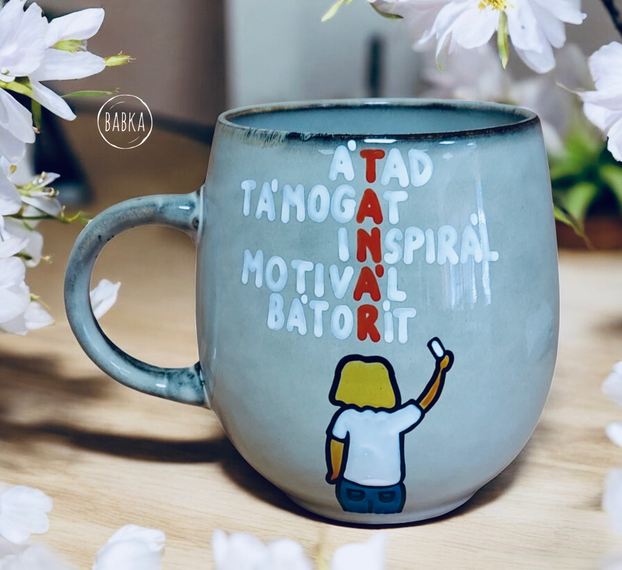 Kézzel festett, egyedi termék. Néhány megjelölt termék kivételével soha nem használunk sablonokat, minden szabad kézzel zajlik. Kérheted különböző variációkban is, egyedi névre szóló feliratokkal, vagy a minta megváltoztatásával is, de tekinthetsz a termékre inspirációként, és megálmodhatsz egy teljesen rád szabott koncepciót. Több mint 800 saját termékünk van, tehát biztosan tudunk majd segíteni. :) Összeállíthatsz saját szetteket is természetesen. Ha nehezen igazodsz el a rengeteg kerámia és porcelán között, akkor ne érezd magad kellemetlenül, ha írsz nekünk! 😊 Mi is elveszünk néha sok mintában, természetes dolog, ha kérdezni szeretnél. A termékeket kézzel festjük, szárítjuk, hőkezeljük, ami időigényes folyamat, de ennek ellenére a 24 órás expressz kiszállításnak hála a legtöbb esetben 3-4 nap alatt meg is kapod a kiválasztott darabokat. A maximum kiszállítási időnk 10 munkanap, de ez ritkán fordul elő, és általában akkor, ha sok darabból álló teljesen egyedi kivitelezést kérsz. Ha nagyon sietned kell, akkor válaszd az SOS kiszállítást, mint feláras szolgáltatást. Ha SOS kiszállítást kérsz, akkor minden más munkát félreteszünk, és azonnal nekilátunk a tiédnek, hogy 1-3 nap alatt megkapd. Tipp: Ha nagyon sürgős, akkor írj nekünk messengeren, ahol gyorsan egyeztethetjük a részleteket, és igyekszünk segíteni, hogy az ajándékozás jól sikerüljön. A termékekhez kérhetsz extrákat, mint díszcsomagolást, a tányérokhoz fali akasztót vagy állványt (Bögrék esetében, ha az állvány opciót bejelölöd, akkor egy fém akasztó kampót teszünk a csomagba.), üdvözlő kártyát, ami egy egyedileg szövegezhető, tartós alumínium kártya (nem papír). Ha bármilyen probléma lenne a rendeléseddel, akkor írj nekünk mielőbb. Fontos tudnod, hogy soha és semmilyen esetben nem érhet kár nálunk! Írj nekünk emailt a hello@babkamanufaktura.hu email címre, és maximum néhány nap alatt releváns választ adunk. Ha sürgős, akkor pedig válaszd a messengert! Ha nagyobb mennyiséget rendelnél viszonteladásra, rendezvényre, tudunk adni egyedi árajánlatot (min. 20 darab tétel előre kifizetett megrendelésétől). Számos kávézó, cukrászda, esküvő, céges buli lett egy kicsit emelkedettebb a Babka termékeitől. Bár kézenfekvő lenne, hogy emailben jelzed az igényt, mégis válaszd inkább ez esetben is a messengert, mert sokkal dinamikusabban tudunk ott egyeztetni. Figyelj, hogy jelentkezz be az üzenet küldésénél, és ne vendégként írj, mert az elveszhet. Nézz körül az oldalon! Bármilyen kérdés, kérés esetén, írj Babkának az oldalon található messenger ikon segítségével, vagy a megadott egyéb csatornák egyikén. (Minden egyéb kérdés tekintetében megtalálod oldalunkon ÁSZF-ünket is.) Ne feledd! A Babkával átadott üzenetekre még évekig emlékezni fognak, és érezni fogják, hogy időt is, kreativitást is áldoztál rájuk. Nem csak letudtad a „feladatot” egy sablonos megoldással. Köszönjük, hogy itt vagy! Jó válogatást, tervezést kívánunk!