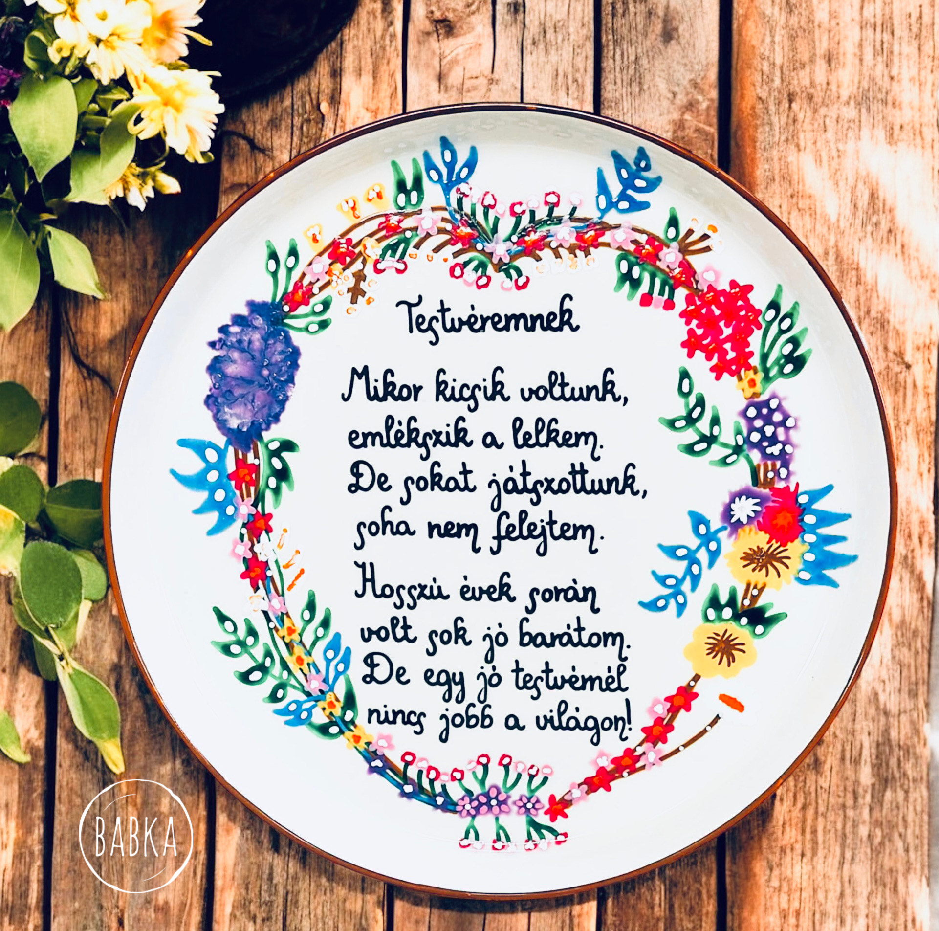 - Kézzel festett egyedi termék. Néhány megjelölt termék kivételével soha nem használunk sablonokat, minden szabad kézzel zajlik. Kérheted különböző variációkban is, egyedi névre szóló feliratokkal, vagy a minta megváltoztatásával is, de tekinthetsz a termékre inspirációként, és megálmodhatsz egy teljesen rád szabott koncepciót. Több mint 800 saját termékünk van, tehát biztosan tudunk majd segíteni. :) Összeállíthatsz saját szetteket is természetesen. Ha nehezen igazodsz el a rengeteg kerámia és porcelán között, akkor ne érezd magad kellemetlenül, ha írsz nekünk! 😊 Mi is elveszünk néha sok mintában, természetes dolog, ha kérdezni szeretnél. A termékeket kézzel festjük, szárítjuk, hőkezeljük, ami időigényes folyamat, de ennek ellenére a 24 órás express kiszállításnak hála a legtöbb esetben 3-4 nap alatt meg is kapod a kiválasztott darabokat. A maximum kiszállítási időnk 10 munkanap, de ez ritkán fordul elő, és általában akkor, ha sok darabból álló teljesen egyedi kivitelezést kérsz. Ha nagyon sietned kell, akkor válaszd az SOS kiszállítást, mint feláras szolgáltatást. Ha SOS kiszállítást kérsz, akkor minden más munkát félreteszünk, és azonnal nekilátunk a tiédnek, hogy 1-3 nap alatt megkapd. Tipp: Ha nagyon sürgős, akkor írj nekünk messengeren, ahol gyorsan egyeztethetjüka részleteket, és igyekszünk segíteni, hogy az ajándékozás jól sikerüljön. A termékekhez kérhetsz extrákait, mint díszcsomagolást, a tányérokhoz fali akasztót vagy állványt (Bögrék esetében, ha az állvány opciót bejelölöd, akkor egy fém akasztó kampót teszünk a csomagba.), üdvözlő kártyát, ami egy egyedileg szövegezhető, tartós alumínium kártya (nem papír). Ha bármilyen probléma lenne a rendeléseddel, akkor írj nekünk mielőbb. Fontos tudnod, hogy soha és semmilyen esetben nem érhet kár nálunk! Írj nekünk emailt a hello@babkamanufaktura.hu email címre, és maximum néhány nap alatt releváns választ adunk. Ha sürgős, akkor pedig válaszd a messengert! Ha nagyobb mennyiséget rendelnél viszonteladásra, rendezvényre, tudunk adni egyedi árajánlatot (min. 20 darab tétel előre kifizetett megrendelésétől). Számos kávézó, cukrászda, esküvő, céges buli lett egy kicsit emelkedettebb a Babka termékeitől. Bár kézenfekvő lenne, hogy emailben jelzed az igényt, mégis válaszd inkább ez esetben is a messengert, mert sokkal dinamikusabban tudunk ott egyeztetni. Figyelj, hogy jelentkezz be az üzenet küldésénél, és ne vendégként írj, mert az elveszhet. Nézz körül az oldalon! Bármilyen kérdés, kérés esetén, írj Babkának az oldalon található messenger ikon segítségével, vagy a megadott egyéb csatornák egyikén. Ne feledd! A Babkával átadott üzenetekre még évekig emlékezni fognak, és érezni fogják, hogy időt is, kreativitást is áldoztál rájuk. Nem csak letudtad a „feladatot” egy sablonos megoldással. Köszönjük, hogy itt vagy! Jó válogatást, tervezést kívánunk!