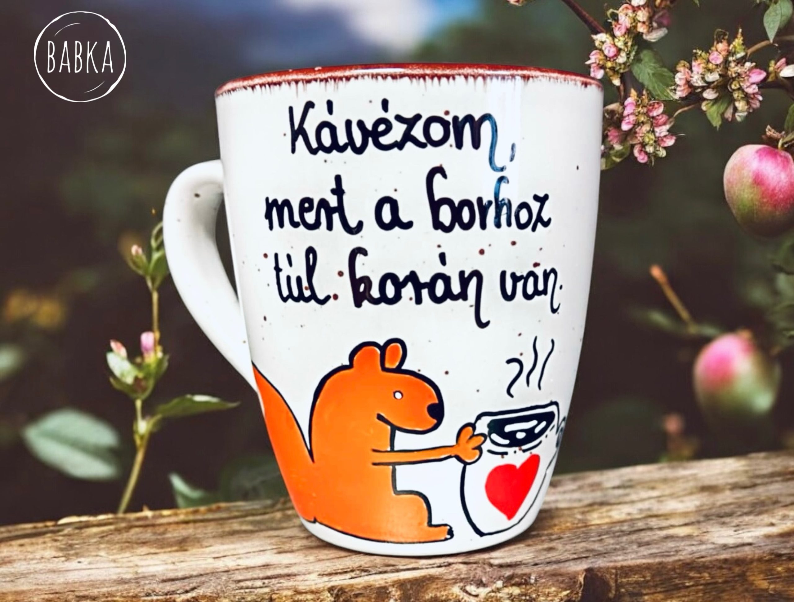 Kézzel festett termék. Egyedi, soha nem készül kettő pontosan egyforma. Néhány megjelölt termék kivételével soha nem használunk sablonokat, minden szabad kézzel zajlik. Kérheted különböző variációkban is, egyedi névre szóló feliratokkal, vagy a minta megváltoztatásával is, de tekinthetsz a termékre inspirációként, és megálmodhatsz egy teljesen rád szabott koncepciót. Több mint 800 saját termékünk van, tehát biztosan tudunk majd segíteni. :) Összeállíthatsz saját szetteket is természetesen. Ha nehezen igazodsz el a rengeteg kerámia és porcelán között, akkor ne érezd magad kellemetlenül, ha írsz nekünk! 😊 Mi is elveszünk néha sok mintában, természetes dolog, ha kérdezni szeretnél. A termékeket kézzel festjük, szárítjuk, hőkezeljük, ami időigényes folyamat, de ennek ellenére a 24 órás expressz kiszállításnak hála a legtöbb esetben 3-4 nap alatt meg is kapod a kiválasztott darabokat. A maximum kiszállítási időnk 10 munkanap, de ez ritkán fordul elő, és általában akkor, ha sok darabból álló teljesen egyedi kivitelezést kérsz. Ha nagyon sietned kell, akkor válaszd az SOS kiszállítást, mint feláras szolgáltatást. Ha SOS kiszállítást kérsz, akkor minden más munkát félreteszünk, és azonnal nekilátunk a tiédnek, hogy 1-3 nap alatt megkapd. Tipp: Ha nagyon sürgős, akkor írj nekünk messengeren, ahol gyorsan egyeztethetjük a részleteket, és igyekszünk segíteni, hogy az ajándékozás jól sikerüljön. A termékekhez kérhetsz extrákat, mint díszcsomagolást, a tányérokhoz fali akasztót vagy állványt (Bögrék esetében, ha az állvány opciót bejelölöd, akkor egy fém akasztó kampót teszünk a csomagba.), üdvözlő kártyát, ami egy egyedileg szövegezhető, tartós alumínium kártya (nem papír). Ha bármilyen probléma lenne a rendeléseddel, akkor írj nekünk mielőbb. Fontos tudnod, hogy soha és semmilyen esetben nem érhet kár nálunk! Írj nekünk emailt a hello@babkamanufaktura.hu email címre, és maximum néhány nap alatt releváns választ adunk. Ha sürgős, akkor pedig válaszd a messengert! Ha nagyobb mennyiséget rendelnél viszonteladásra, rendezvényre, tudunk adni egyedi árajánlatot (min. 20 darab tétel előre kifizetett megrendelésétől). Számos kávézó, cukrászda, esküvő, céges buli lett egy kicsit emelkedettebb a Babka termékeitől. Bár kézenfekvő lenne, hogy emailben jelzed az igényt, mégis válaszd inkább ez esetben is a messengert, mert sokkal dinamikusabban tudunk ott egyeztetni. Figyelj, hogy jelentkezz be az üzenet küldésénél, és ne vendégként írj, mert az elveszhet. Nézz körül az oldalon! Bármilyen kérdés, kérés esetén, írj Babkának az oldalon található messenger ikon segítségével, vagy a megadott egyéb csatornák egyikén. Ne feledd! A Babkával átadott üzenetekre még évekig emlékezni fognak, és érezni fogják, hogy időt is, kreativitást is áldoztál rájuk. Nem csak letudtad a „feladatot” egy sablonos megoldással. Köszönjük, hogy itt vagy! Jó válogatást, tervezést kívánunk!