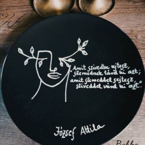 Kézzel festett egyedi termék. Néhány megjelölt termék kivételével soha nem használunk sablonokat, minden szabad kézzel zajlik. Kérheted különböző variációkban is, egyedi névre szóló feliratokkal, vagy a minta megváltoztatásával is, de tekinthetsz a termékre inspirációként, és megálmodhatsz egy teljesen rád szabott koncepciót. Több mint 800 saját termékünk van, tehát biztosan tudunk majd segíteni. :) Összeállíthatsz saját szetteket is természetesen. Ha nehezen igazodsz el a rengeteg kerámia és porcelán között, akkor ne érezd magad kellemetlenül, ha írsz nekünk! 😊 Mi is elveszünk néha sok mintában, természetes dolog, ha kérdezni szeretnél. A termékeket kézzel festjük, szárítjuk, hőkezeljük, ami időigényes folyamat, de ennek ellenére a 24 órás express kiszállításnak hála a legtöbb esetben 3-4 nap alatt meg is kapod a kiválasztott darabokat. A maximum kiszállítási időnk 10 munkanap, de ez ritkán fordul elő, és általában akkor, ha sok darabból álló teljesen egyedi kivitelezést kérsz. Ha nagyon sietned kell, akkor válaszd az SOS kiszállítást, mint feláras szolgáltatást. Ha SOS kiszállítást kérsz, akkor minden más munkát félreteszünk, és azonnal nekilátunk a tiédnek, hogy 1-3 nap alatt megkapd. Tipp: Ha nagyon sürgős, akkor írj nekünk messengeren, ahol gyorsan egyeztethetjüka részleteket, és igyekszünk segíteni, hogy az ajándékozás jól sikerüljön. A termékekhez kérhetsz extrákait, mint díszcsomagolást, a tányérokhoz fali akasztót vagy állványt (Bögrék esetében, ha az állvány opciót bejelölöd, akkor egy fém akasztó kampót teszünk a csomagba.), üdvözlő kártyát, ami egy egyedileg szövegezhető, tartós alumínium kártya (nem papír). Ha bármilyen probléma lenne a rendeléseddel, akkor írj nekünk mielőbb. Fontos tudnod, hogy soha és semmilyen esetben nem érhet kár nálunk! Írj nekünk emailt a hello@babkamanufaktura.hu email címre, és maximum néhány nap alatt releváns választ adunk. Ha sürgős, akkor pedig válaszd a messengert! Ha nagyobb mennyiséget rendelnél viszonteladásra, rendezvényre, tudunk adni egyedi árajánlatot (min. 20 darab tétel előre kifizetett megrendelésétől). Számos kávézó, cukrászda, esküvő, céges buli lett egy kicsit emelkedettebb a Babka termékeitől. Bár kézenfekvő lenne, hogy emailben jelzed az igényt, mégis válaszd inkább ez esetben is a messengert, mert sokkal dinamikusabban tudunk ott egyeztetni. Figyelj, hogy jelentkezz be az üzenet küldésénél, és ne vendégként írj, mert az elveszhet. Nézz körül az oldalon! Bármilyen kérdés, kérés esetén, írj Babkának az oldalon található messenger ikon segítségével, vagy a megadott egyéb csatornák egyikén. Ne feledd! A Babkával átadott üzenetekre még évekig emlékezni fognak, és érezni fogják, hogy időt is, kreativitást is áldoztál rájuk. Nem csak letudtad a „feladatot” egy sablonos megoldással. Köszönjük, hogy itt vagy! Jó válogatást, tervezést kívánunk!